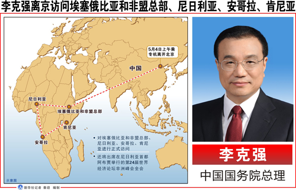 李克強(qiáng)離京訪問(wèn)埃塞俄比亞和非盟總部、尼日利亞、安哥拉、肯尼亞 新華社記者 秦迎 編制