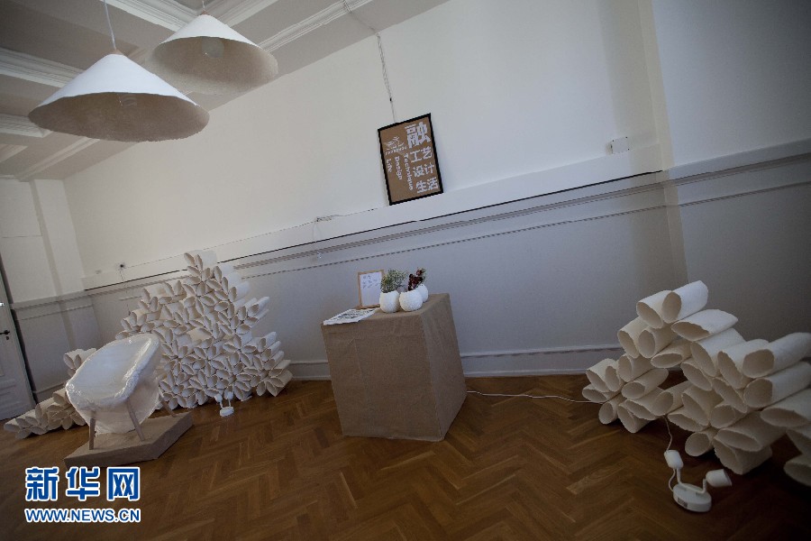 圖為10日所拍攝的“融?工藝設(shè)計生活”為主題的中國當代設(shè)計展畫面。