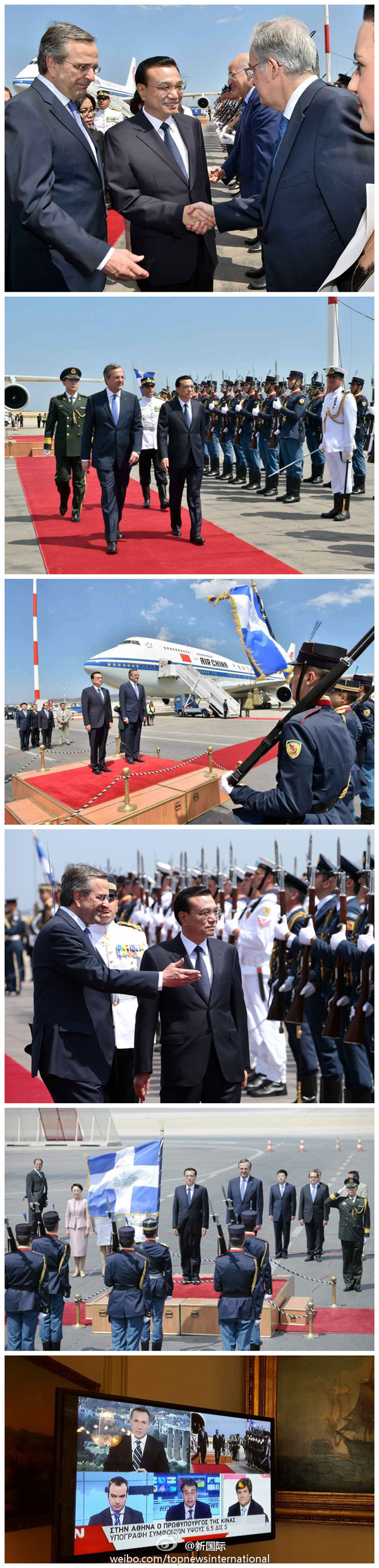 新華網(wǎng)北京6月20日電 據(jù)新華社“新國際”微博報道,李克強總理偕夫人程虹19日下午乘專機抵達雅典,開始對希臘的正式訪問,希臘總理薩馬拉斯和夫人到機場迎接?,F(xiàn)場奏響中希兩國國歌,李克強在薩馬拉斯陪同下檢閱了儀仗隊。希臘是西方文明發(fā)源地,這是李克強總理首次訪希,將推進雙方海洋、文化等領(lǐng)域合作。