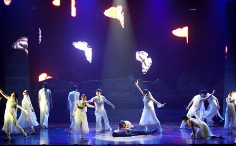 ????此次演出特邀中方以詩經(jīng)經(jīng)典《關(guān)雎》《摽有梅》開場,演員錦衣華服,緩緩起聲,琴音低沉哀鳴高亢交錯,歌聲余音繞梁之際,韓國音樂劇《蝴蝶博士》華麗登場。伴隨著樂隊的現(xiàn)場演奏,音樂劇主角石宙明以大段韓語獨白震撼全場,兩側(cè)屏幕同步顯示中文翻譯。為照顧現(xiàn)場觀眾,韓方演員遇到簡單詞匯則以普通話來詮釋劇情,引發(fā)現(xiàn)場觀眾共鳴。兩個節(jié)目在動與靜,內(nèi)斂與奔放中,碰撞出藝術(shù)火花。中韓兩國藝術(shù)家跨越語言障礙,用不同的藝術(shù)形式表達了共同的愿望:思考生活,憧憬未來。