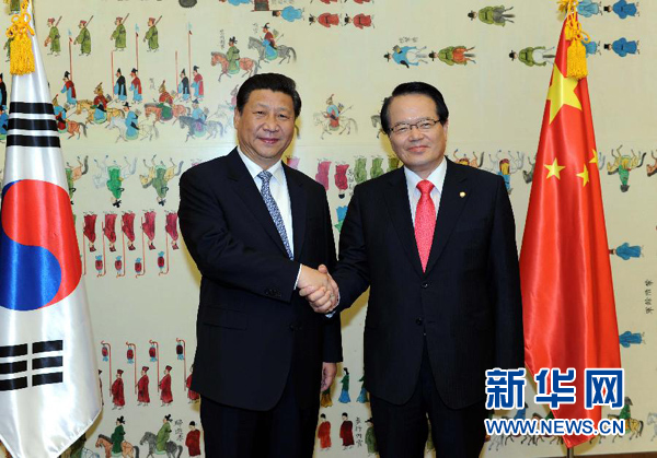 ????7月4日,國(guó)家主席習(xí)近平在首爾會(huì)見韓國(guó)國(guó)會(huì)議長(zhǎng)鄭義和以及韓國(guó)各政黨領(lǐng)袖和友好議員代表。 新華社記者 饒愛民 攝