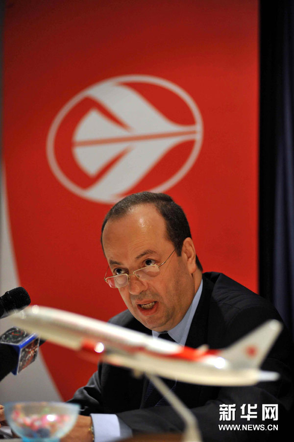 ???據(jù)外電報道,阿爾及利亞航空公司一架民航客機(jī)24日在布基納法索首都瓦加杜古起飛后不久失聯(lián)。這是2011年7月6日在阿爾及利亞首都阿爾及爾拍攝的阿爾及利亞航空公司新任首席執(zhí)行官穆罕默德·薩拉赫出席新聞發(fā)布會的資料照片。新華社發(fā)