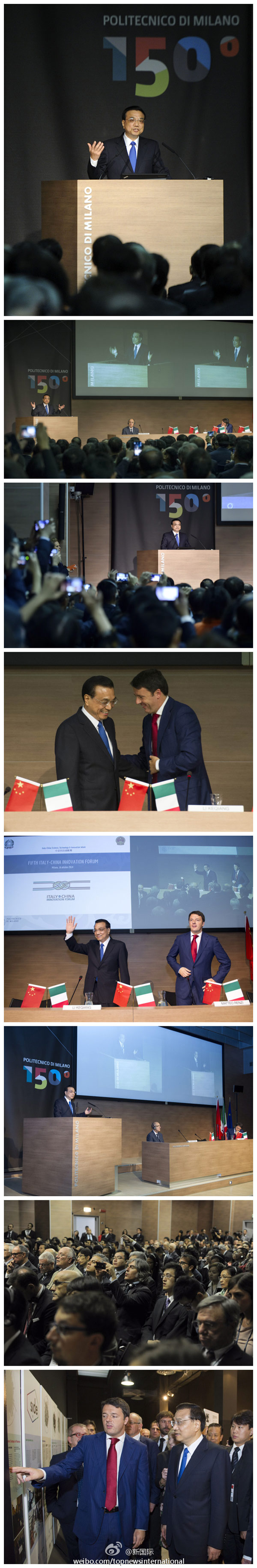 ????新華網(wǎng)北京10月16日電 據(jù)新華社“新國際”微博報(bào)道,李克強(qiáng)總理16日在意大利總理倫齊陪同下在米蘭理工大學(xué)出席中意創(chuàng)新周大會(huì)時(shí)說,我們的時(shí)代是創(chuàng)新的時(shí)代,科技創(chuàng)新不僅來自對(duì)科學(xué)的了解,對(duì)技術(shù)的把握,也源自創(chuàng)意,希望中意青年用東西方智慧碰撞出更多“奇思妙想”,讓創(chuàng)意促進(jìn)創(chuàng)新,進(jìn)而提升兩國產(chǎn)業(yè)競(jìng)爭(zhēng)力。