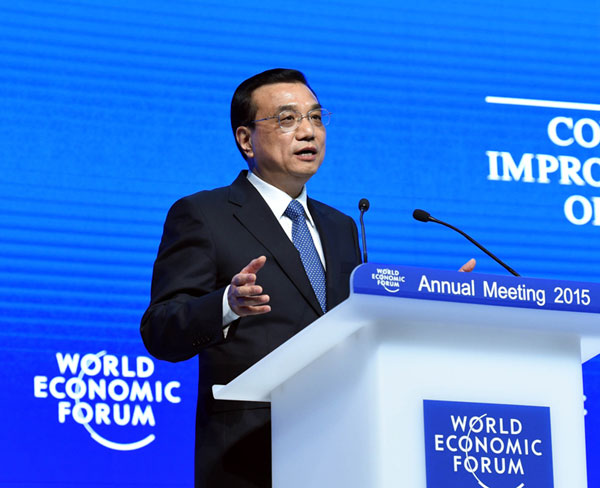 ????1月21日,中國(guó)國(guó)務(wù)院總理李克強(qiáng)在瑞士達(dá)沃斯舉行的世界經(jīng)濟(jì)論壇全會(huì)發(fā)表特別致辭并回答提問(wèn)。 新華社記者 饒愛(ài)民攝