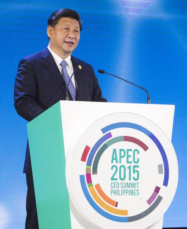 2015年11月18日,國(guó)家主席習(xí)近平在菲律賓馬尼拉出席亞太經(jīng)合組織工商領(lǐng)導(dǎo)人峰會(huì)并發(fā)表主旨演講。