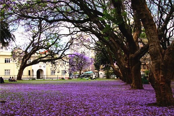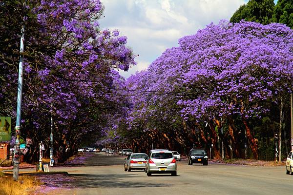 直至今天,漫步在哈拉雷街道上依舊能感受到英國小鎮(zhèn)氣息,每年9至10月份,紫色的藍花楹盛開之際,全城沉浸在紫色的花海中。