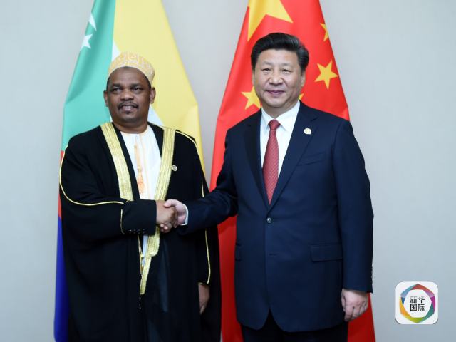 12月4日,國(guó)家主席習(xí)近平在約翰內(nèi)斯堡會(huì)見(jiàn)科摩羅總統(tǒng)伊基利盧。(新華社記者張鐸攝)