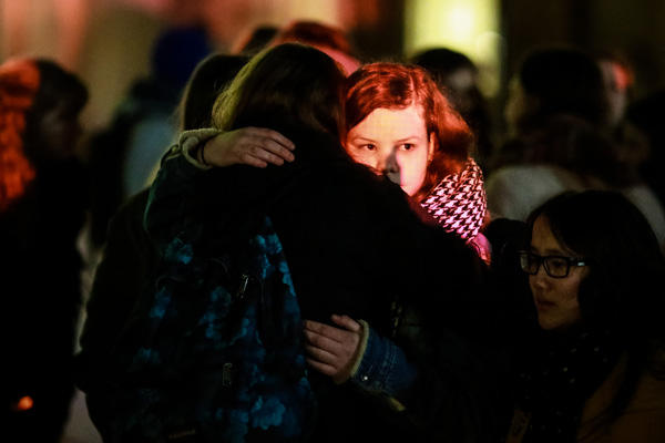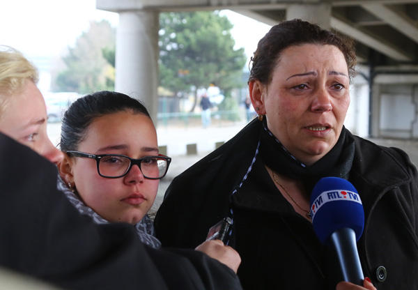 3月22日,在比利時(shí)首都布魯塞爾,兩名現(xiàn)場目擊者在接受采訪時(shí)潸然淚下。新華社記者龔兵攝