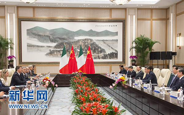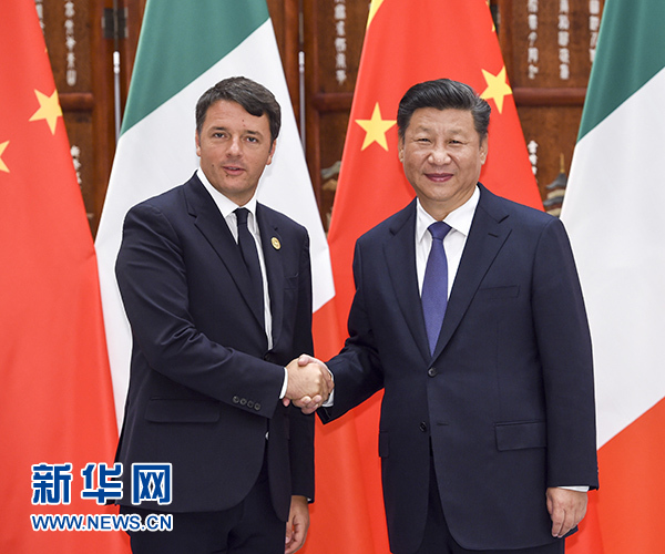 習近平歡迎倫齊來華出席二十國集團領導人杭州峰會。習近平指出,近年來,中意關系取得長足進步,雙方秉承相互尊重、互利共贏精神,深化政治互信,擴大務實合作,使兩國人民獲得實實在在的利益。中方愿同意方攜手努力,不斷推進兩國全面戰(zhàn)略伙伴關系向前發(fā)展。我們要堅持兩國戰(zhàn)略互信大方向,尊重彼此核心利益和重大關切,密切兩國政府、議會、政黨交流合作。要堅持互利共贏原則,優(yōu)勢互補,實現共同發(fā)展。中方歡迎意方積極參與“一帶一路”建設。我們要以古老文明為依托,密切人文交流,深化傳統(tǒng)友誼。要加強在國際和地區(qū)事務中的協調和配合,努力構建以合作共贏為核心的新型國際關系。要將中歐和平、增長、改革、文明四大伙伴關系落到實處,共同維護中歐關系良好發(fā)展勢頭。