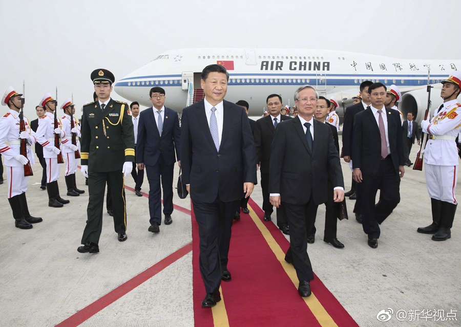 新華網(wǎng)北京11月12日電 中共中央總書記、國(guó)家主席習(xí)近平12日抵達(dá)河內(nèi),開始對(duì)越南社會(huì)主義共和國(guó)進(jìn)行國(guó)事訪問(wèn)。(攝影:新華社記者蘭紅光 ?據(jù)新華社“新華視點(diǎn)”微博報(bào)道)