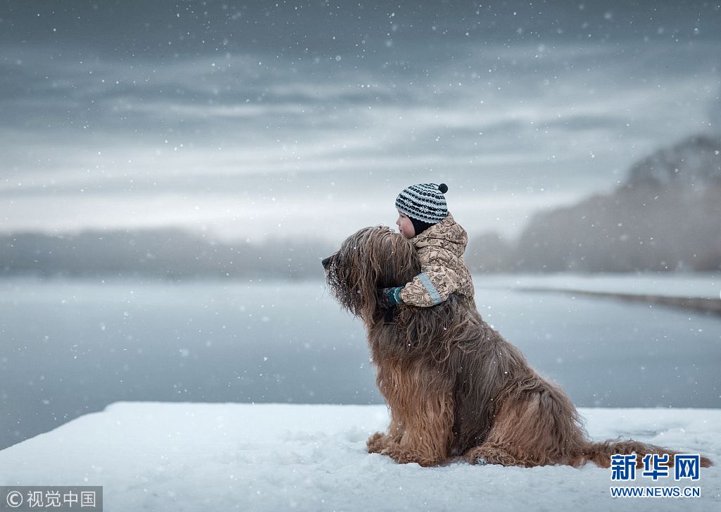 4歲6個(gè)月的Gregory抱著伯瑞犬Krispy,它有40公斤重68厘米高。(圖片來(lái)源:視覺(jué)中國(guó))