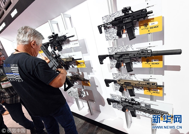當(dāng)?shù)貢r(shí)間2018年1月23日,美國拉斯維加斯,美國全國射擊運(yùn)動(dòng)基金會(huì)(NSSF)舉辦槍支展銷會(huì)。(圖片來源:視覺中國)