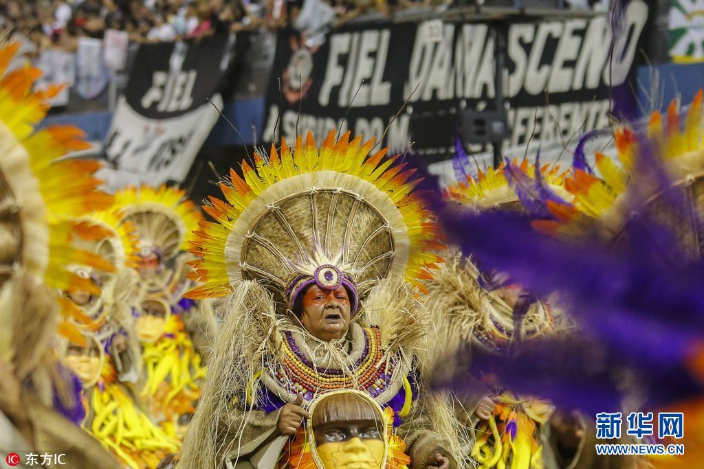 當(dāng)?shù)貢r間2018年2月11日,巴西圣保羅、里約等地進(jìn)入狂歡節(jié)第三天,盛大游行、歌舞表演晝夜不停。(圖片來源:東方IC)