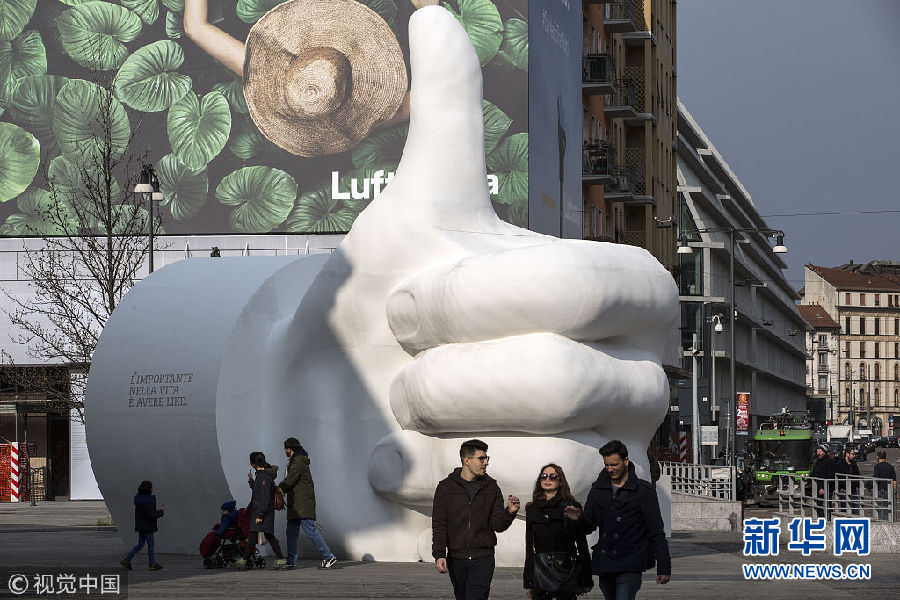 畫風(fēng)清奇!意大利米蘭地標(biāo)建筑旁現(xiàn)“點(diǎn)贊”大拇指