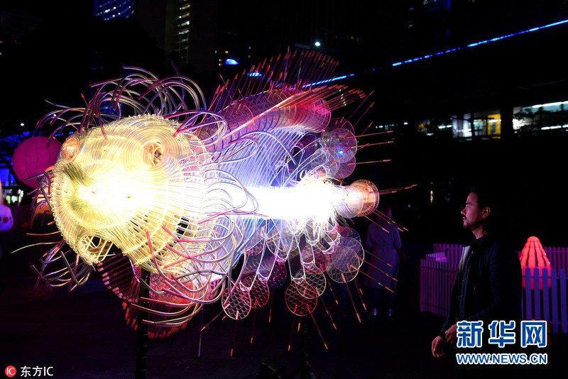 5月24日,澳大利亞悉尼,悉尼燈光音樂節(jié)舉行預展,各色各樣的燈光裝置和燈光表演美輪美奐。(圖片來源:東方IC)