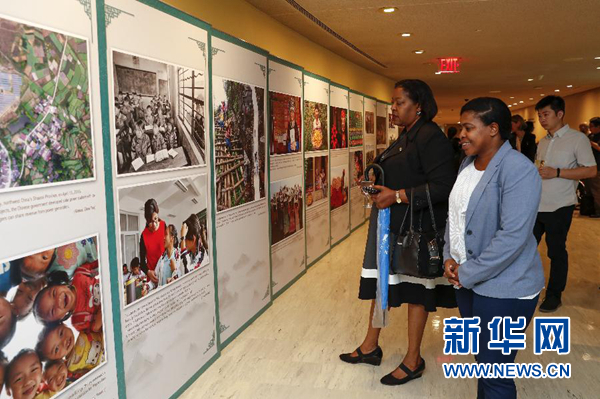 6月28日,在位于紐約的聯合國總部,人們觀看“追尋美好生活”中國脫貧成就展。 新華社記者李木子攝