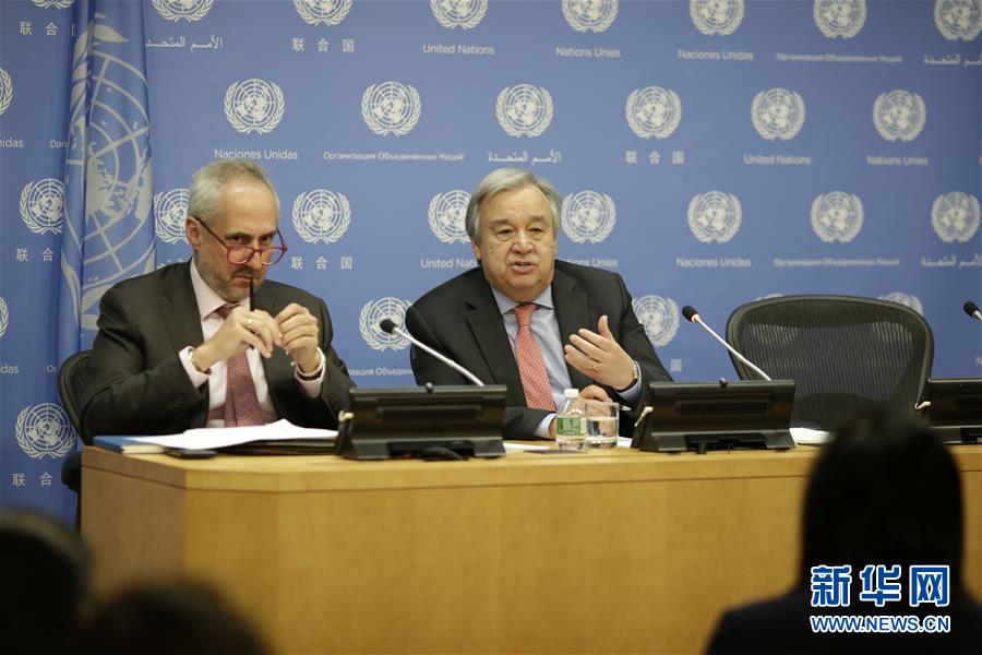 7月12日,在位于紐約的聯(lián)合國總部,聯(lián)合國秘書長古特雷斯(右)出席記者招待會。聯(lián)合國秘書長古特雷斯12日舉行記者招待會,強調多邊主義和基于規(guī)則的國際關系對于應對全球挑戰(zhàn)的重要性。新華社記者 李木子 攝