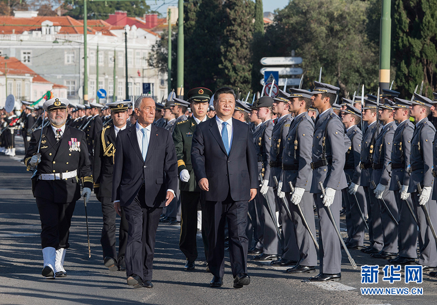 當(dāng)?shù)貢r(shí)間12月4日,國(guó)家主席習(xí)近平在里斯本同葡萄牙總統(tǒng)德索薩舉行會(huì)談。會(huì)談前,德索薩總統(tǒng)在帝國(guó)廣場(chǎng)為習(xí)近平舉行隆重歡迎儀式。 新華社記者李學(xué)仁攝