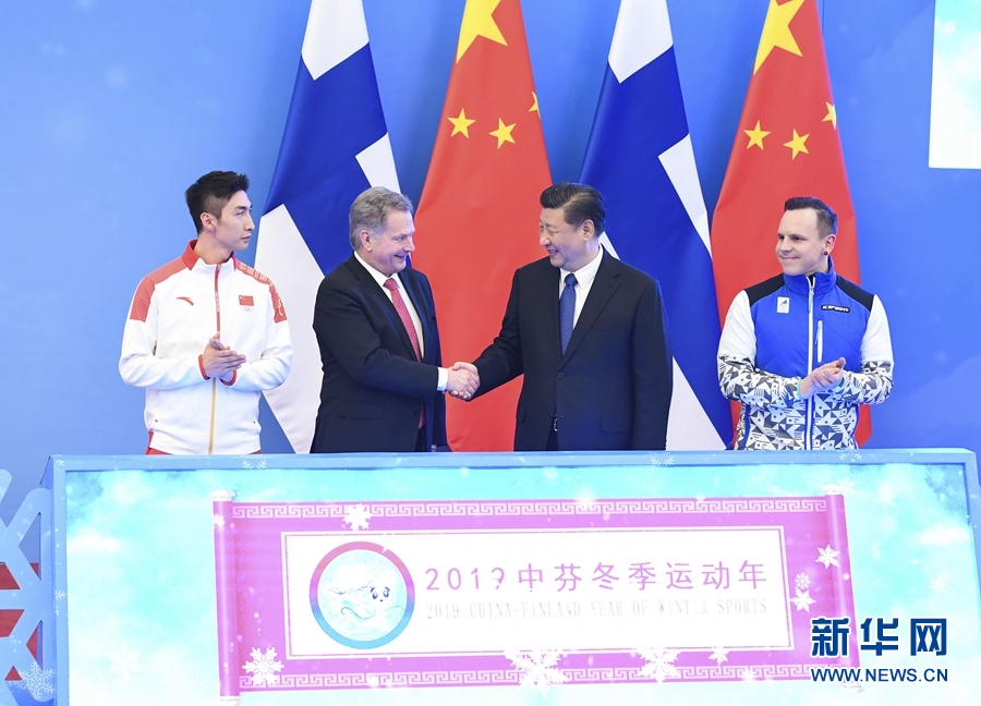簽字儀式后,習近平同尼尼斯托共同出席了“2019中芬冬季運動年”啟動儀式。習近平在致辭中指出,新中國第一次走上奧運賽場就是參加1952年芬蘭赫爾辛基奧運會,五星紅旗第一次在奧林匹克體育場上升起。中芬冬季運動發(fā)展契合度高、互補性強,合作潛力巨大。相信“2019中芬冬季運動年”將推動兩國體育合作邁上新臺階,共同為中芬人文交流注入新活力,不斷推動中芬面向未來的新型合作伙伴關系邁上新臺階。尼尼斯托表示,中國已成為世界體育大國。芬中在體育領域結(jié)緣已久。芬蘭支持中國成功舉辦2022年冬奧會,很高興成為第一個同中國開啟冬季運動年的國家,相信這將進一步促進兩國人民的友誼。中國正在向冬季運動強國邁進,芬蘭愿助一臂之力。