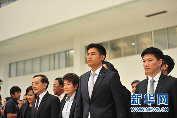 3月7日,在泰國(guó)曼谷,泰護(hù)國(guó)黨黨魁蓬帕尼(中)來到泰國(guó)憲法法院。 新華社發(fā)(拉亨 攝)