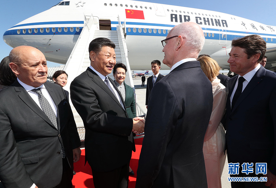 3月24日,國家主席習(xí)近平抵達(dá)法國尼斯,隨后乘車前往摩納哥,開始對摩納哥公國進(jìn)行國事訪問。習(xí)近平和夫人彭麗媛在機(jī)場受到摩納哥政府首腦、國務(wù)大臣泰爾,摩納哥對外關(guān)系與合作大臣托內(nèi)利熱情迎接。法國外長勒德里昂也到機(jī)場迎接。 新華社記者 鞠鵬 攝