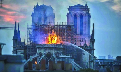 當?shù)貢r間15日傍晚,位于巴黎塞納河西岱島上擁有800多年歷史,在全世界享有盛名的巴黎圣母院遭遇火災(zāi),大火一直燃燒至16日凌晨火勢才得到有效的控制,明火基本被撲滅。經(jīng)過500余名消防員的奮力撲救,巴黎圣母院的兩個鐘樓和正面建筑得到挽救,但三分之二的屋頂已被大火損毀,特別是標志性的塔尖已經(jīng)倒塌。