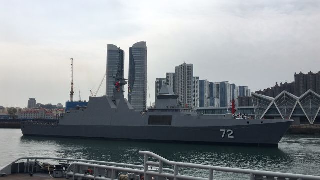 新華社青島4月19日電(記者趙新兵、梅世雄)4月19日10時(shí)許,新加坡海軍“堅(jiān)強(qiáng)”號(hào)護(hù)衛(wèi)艦緩緩駛?cè)肭鄭u大港碼頭。這是參加中國人民解放軍海軍成立70周年多國海軍活動(dòng)到訪的第一艘外國海軍艦艇。