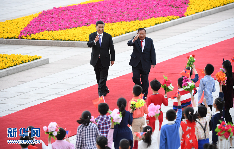 4月30日,中共中央總書記、國(guó)家主席習(xí)近平在北京同老撾人民革命黨中央總書記、國(guó)家主席本揚(yáng)舉行會(huì)談。這是會(huì)談前,習(xí)近平在人民大會(huì)堂東門外廣場(chǎng)為本揚(yáng)舉行歡迎儀式。 新華社記者 饒愛(ài)民 攝