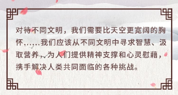在這次演講中,習(xí)近平主席用生動(dòng)的語(yǔ)言講明了對(duì)待不同文明應(yīng)有的態(tài)度和原則: