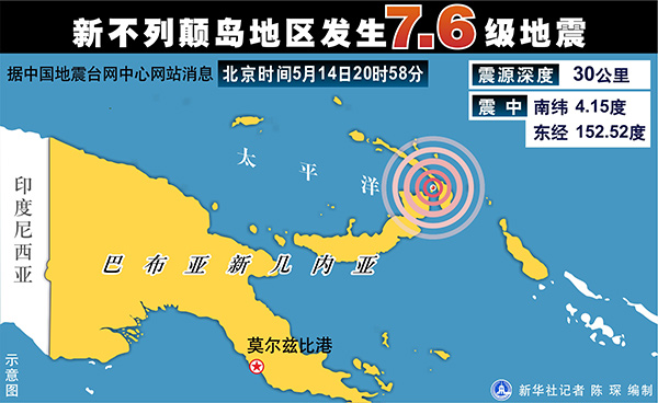 圖表:新不列顛島地區(qū)發(fā)生7.6級地震 新華社記者 陳琛 編制
