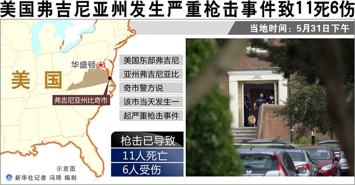 新華社華盛頓5月31日電(記者孫丁 徐劍梅)美國(guó)東部弗吉尼亞州弗吉尼亞比奇市警方5月31日通報(bào)說(shuō),該市當(dāng)天下午發(fā)生一起嚴(yán)重槍擊事件,已造成11人死亡、6人受傷。