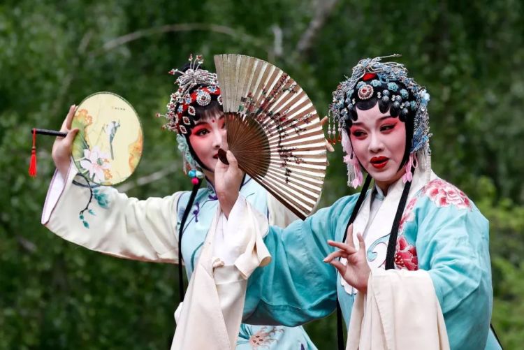 ↑上海張軍昆曲藝術(shù)中心演員在莫斯科契訶夫國際戲劇節(jié)上表演《牡丹亭》。 (2019年,阿爾喬姆·格奧達(dá)基揚)