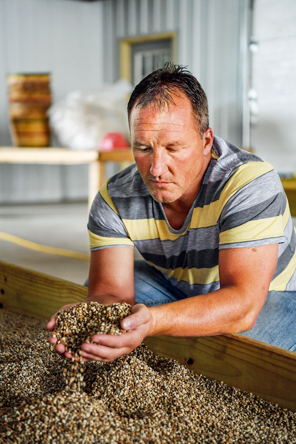 由于美國一些人挑起經(jīng)貿(mào)摩擦,美國農(nóng)產(chǎn)品遭到其他貿(mào)易伙伴反制,出口市場前景黯淡。圖為美國威斯康星州沃索市近郊的農(nóng)戶喬·海爾愁容滿面地捧起西洋參種子查看,希冀經(jīng)貿(mào)摩擦早日結(jié)束。 新華社記者 劉杰/攝