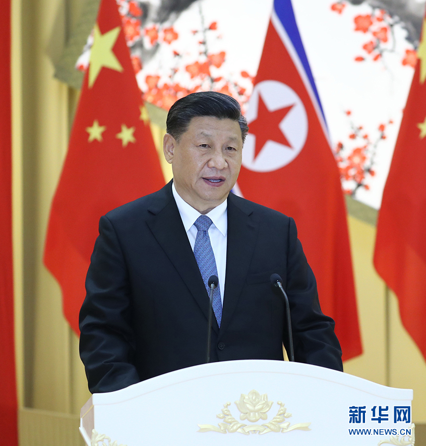 習(xí)近平在致辭中指出,回顧70年中朝關(guān)系史,雙方老一輩領(lǐng)導(dǎo)人親手締造了中朝傳統(tǒng)友誼,為我們留下了共同寶貴財(cái)富。盡管滄海桑田、風(fēng)云變幻,中朝友誼歷久彌堅(jiān)。剛才,我同金正恩委員長進(jìn)行了富有成果的會(huì)談,共同擘畫中朝關(guān)系美好未來,達(dá)成一系列重要共識(shí)。我們一致認(rèn)為,中朝雙方要堅(jiān)定不移傳承弘揚(yáng)傳統(tǒng)友誼,續(xù)寫時(shí)代新篇章。我們一致認(rèn)為,政治解決半島問題是人心所向、大勢所趨,要繼續(xù)高舉和平對話旗幟,為實(shí)現(xiàn)地區(qū)乃至世界和平、穩(wěn)定、繁榮作出新的更大貢獻(xiàn)。