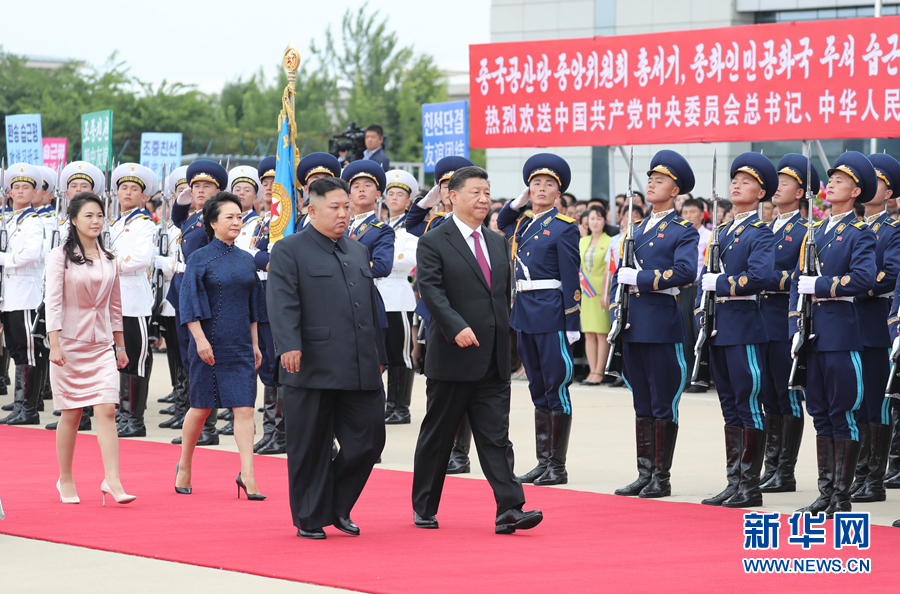 6月21日,中共中央總書記、國家主席習(xí)近平結(jié)束對朝鮮的國事訪問離開平壤回國。離開前,習(xí)近平和夫人彭麗媛出席朝鮮勞動(dòng)黨委員長、國務(wù)委員會委員長金正恩和夫人李雪主在機(jī)場舉行的歡送儀式。新華社記者 鞠鵬 攝