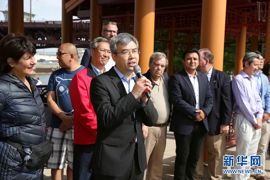 中國(guó)駐芝加哥總領(lǐng)事趙建在龍舟賽開(kāi)幕式上說(shuō),比賽對(duì)于傳承中華文化、促進(jìn)華人社區(qū)與其他社區(qū)交流意義重大。記者 汪平 攝
