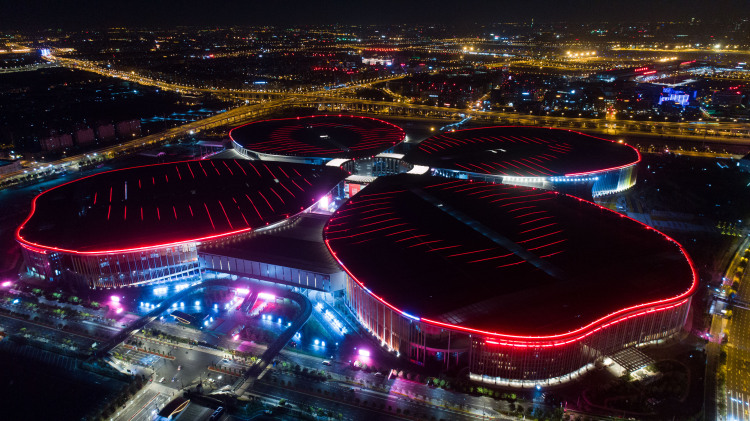 2018年10月,上海。無(wú)人機(jī)拍攝的國(guó)家會(huì)展中心。(新華社記者丁汀攝)