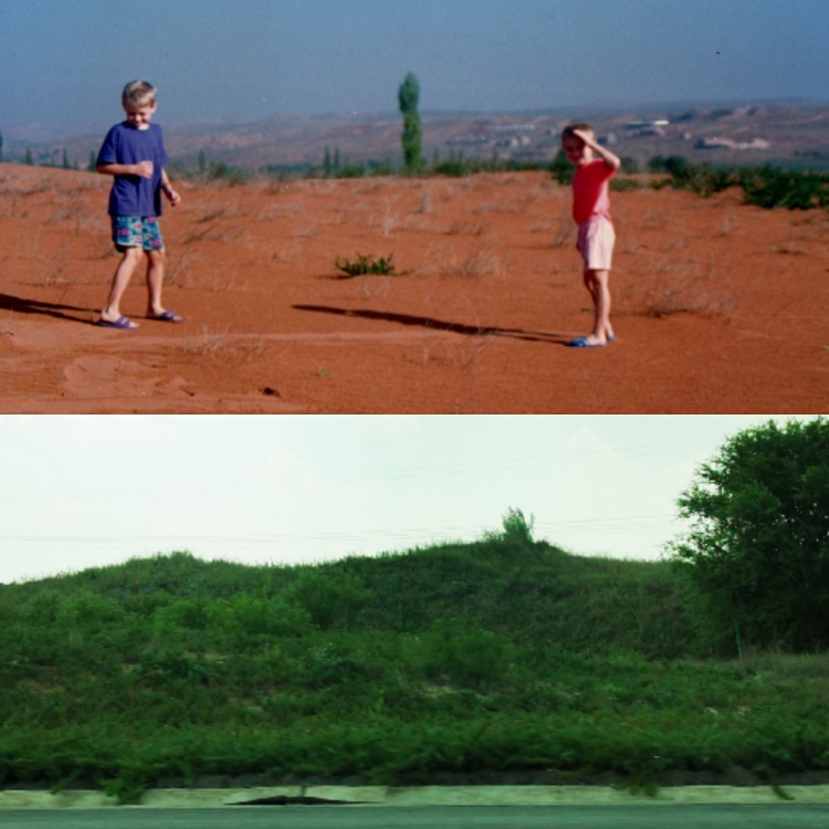 上圖:1994年拍攝的中國(guó)西部沙漠;下圖:2019年拍攝的同一地點(diǎn)。(潘維廉供圖)