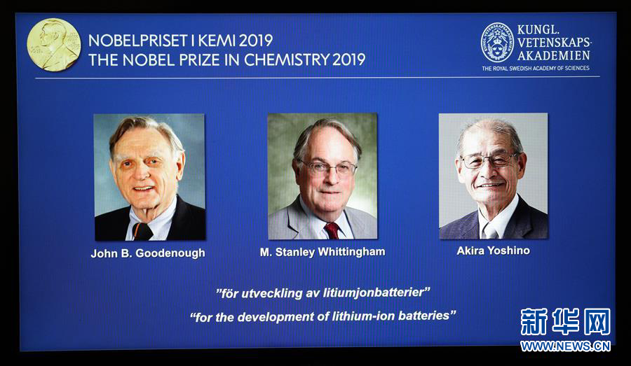 新華社斯德哥爾摩10月9日電(記者和苗 付一鳴)瑞典皇家科學(xué)院9日宣布,將2019年諾貝爾化學(xué)獎(jiǎng)授予來自美國的科學(xué)家約翰·古迪納夫、斯坦利·惠廷厄姆和日本科學(xué)家吉野彰,以表彰他們?cè)阡囯x子電池研發(fā)領(lǐng)域作出的貢獻(xiàn)。