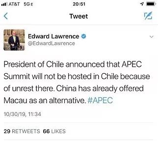 (智利總統(tǒng)宣布因?yàn)轵}亂不在智利舉辦APEC峰會(huì),中國提議澳門作為備選)