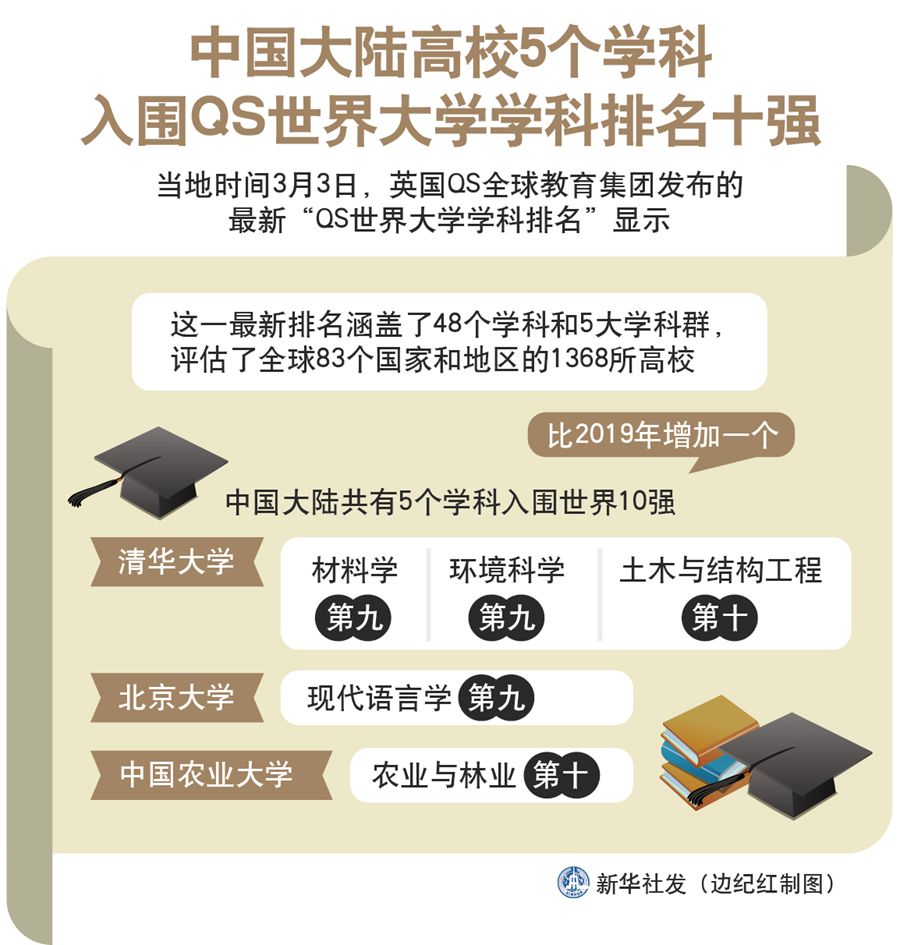 圖表:中國大陸高校5個學科入圍QS世界大學學科排名十強 新華社發(fā) 邊紀紅 制圖