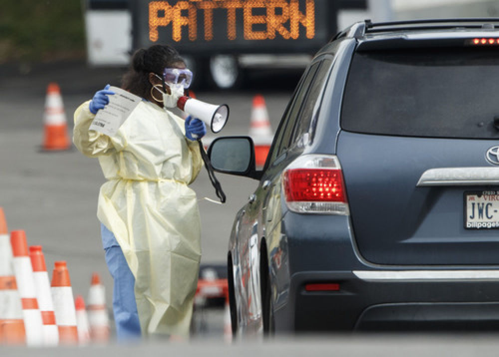 3月19日,在美國弗吉尼亞州阿靈頓,醫(yī)護(hù)人員在一處“免下車”新冠肺炎檢測點(diǎn)引導(dǎo)車輛。新華社發(fā)(沈霆攝)