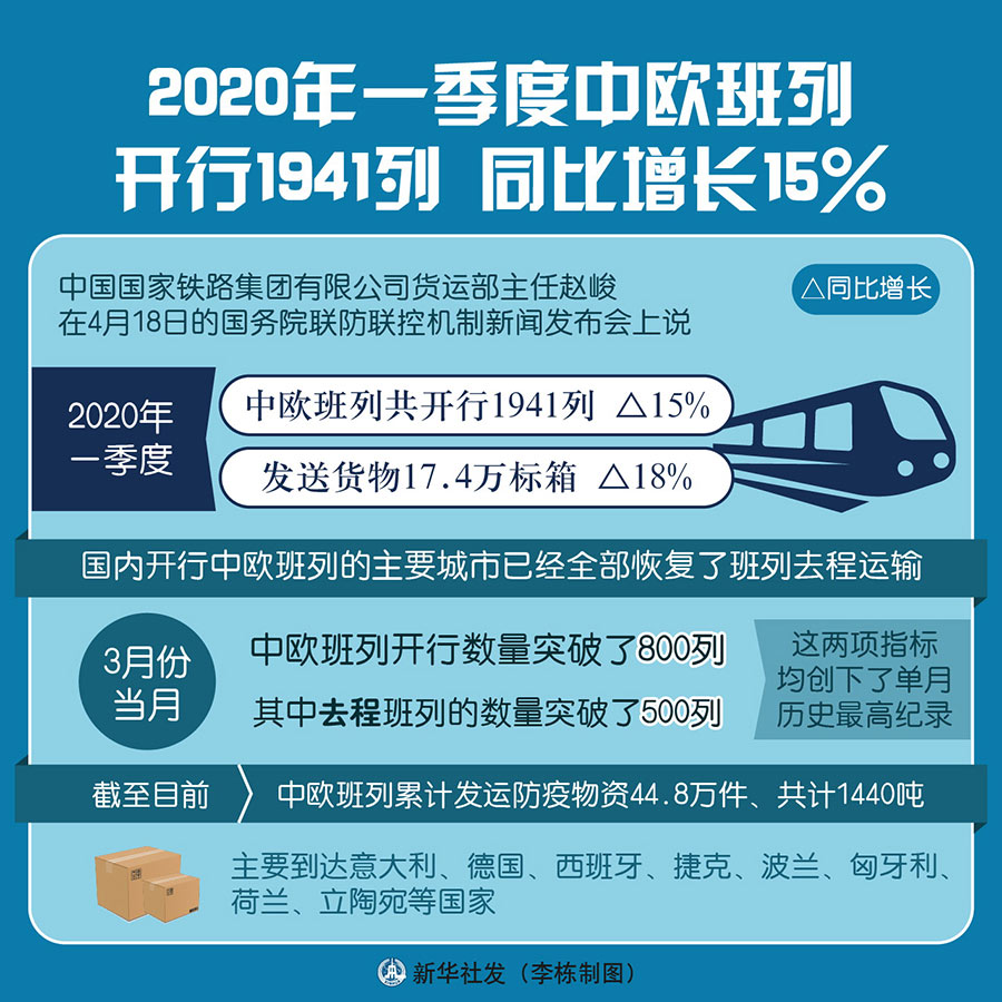疫情之下,中歐班列成為防疫物資運(yùn)輸?shù)闹匾锪魍ǖ馈?jù)趙峻介紹,截至目前,中歐班列累計(jì)發(fā)運(yùn)防疫物資44.8萬(wàn)件、共計(jì)1440噸,主要到達(dá)意大利、德國(guó)、西班牙、捷克、波蘭、匈牙利、荷蘭、立陶宛等國(guó)家,并以這些國(guó)家為節(jié)點(diǎn),分撥到更多的歐洲國(guó)家,有力促進(jìn)了國(guó)際防疫合作。