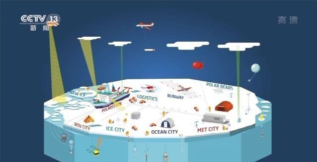 科考隊(duì)還花了18天時(shí)間,在浮冰上搭建起一座研究基地??瓶妓玫脑O(shè)備都被布放在不同的分區(qū),在“水下機(jī)器人”中心,利用遠(yuǎn)程操作工具,就可以收集海冰之下的觀測數(shù)據(jù),并將這些數(shù)據(jù)傳回“極星”號;在海洋中心,科考隊(duì)員在冰層上鉆孔,把觀測設(shè)備降至海冰之下,采集海水樣本;在海冰研究中心,科考隊(duì)員們可以研究和觀察海冰和冰上的雪覆蓋。而在大氣中心,科學(xué)家們可以收集研究大氣和空氣成分。