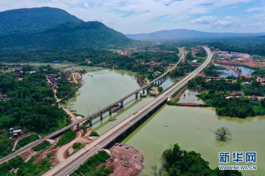 這是10月7日在老撾萬象省航拍的建設(shè)中的萬萬高速公路。(無人機拍攝)新華社發(fā)(云南建投集團(tuán)供圖)