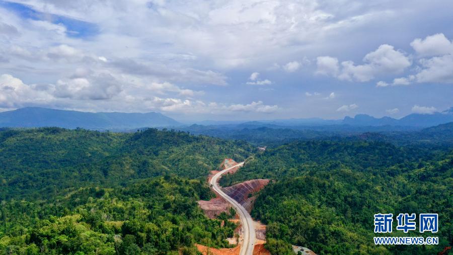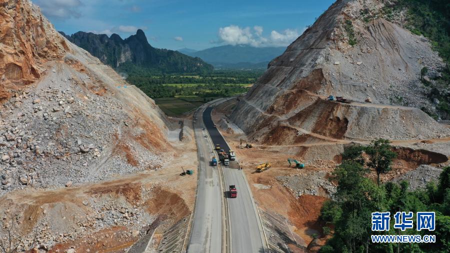 這是10月27日在老撾萬象省拍攝的建設(shè)中的萬萬高速公路。新華社發(fā)(凱喬攝)