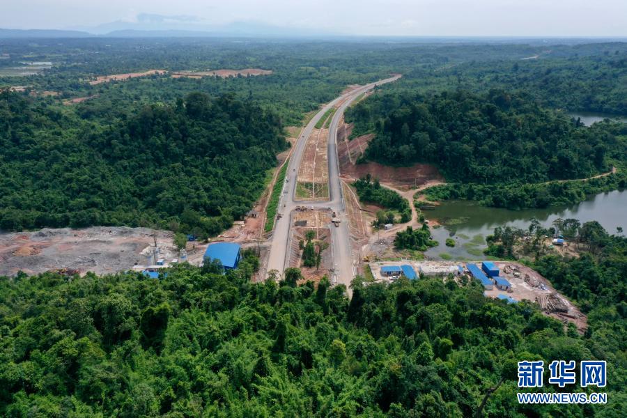 這是7月6日在老撾萬象省航拍的建設(shè)中的萬萬高速公路。(無人機拍攝)新華社發(fā)(云南建投集團(tuán)供圖)