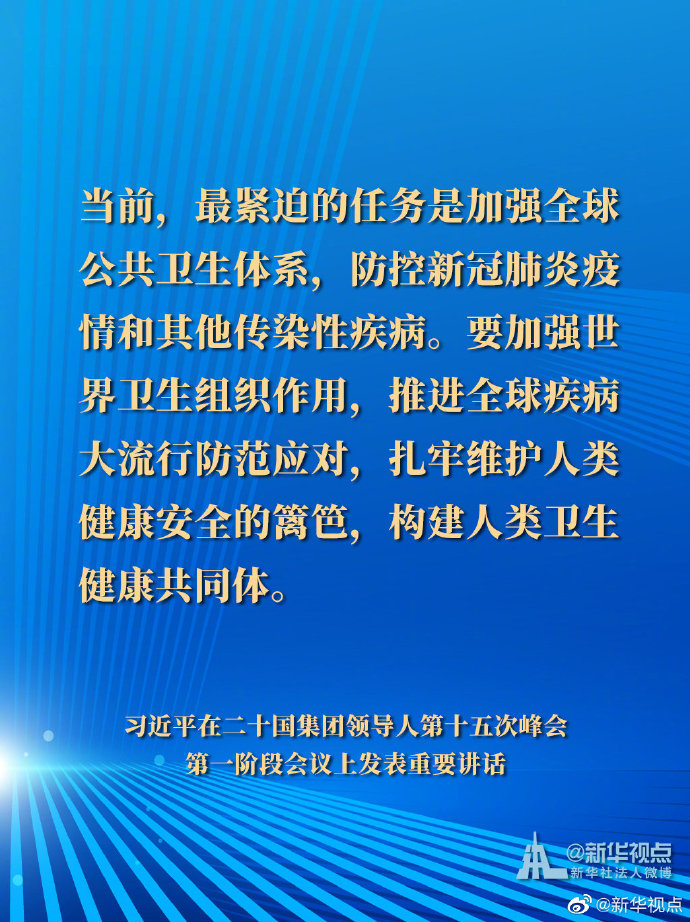 國(guó)家主席習(xí)近平21日晚在北京以視頻方式出席二十國(guó)集團(tuán)領(lǐng)導(dǎo)人第十五次峰會(huì)第一階段會(huì)議并發(fā)表重要講話。以下是講話要點(diǎn)。
