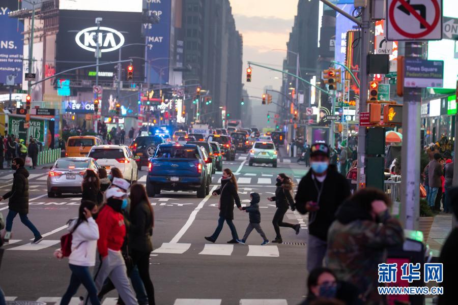 12月12日,行人走在美國紐約時(shí)報(bào)廣場(chǎng)上。新華社發(fā) (郭克攝)