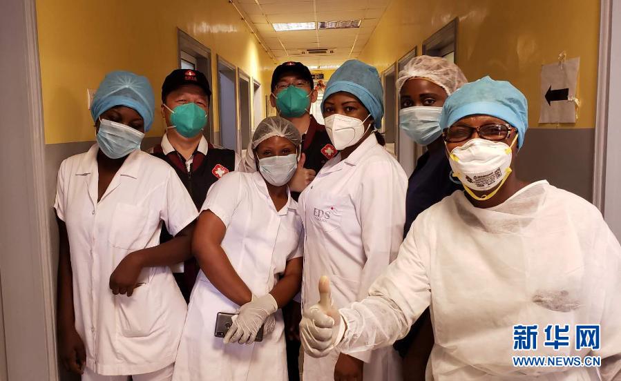 5月26日,中國抗疫醫(yī)療專家組在剛果(布)首都布拉柴維爾指導(dǎo)新冠肺炎病房建設(shè)時,與當(dāng)?shù)匾痪€醫(yī)務(wù)人員合影。新華社發(fā)
